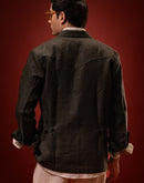 Obsidian Verde | 100% Pure Linen Jacket S | Deep Green